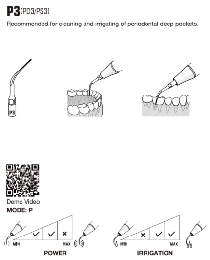 • Se recomienda para la limpieza e irrigación de depósitos subgingivales.