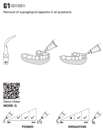 • Recomendado para la eliminación de depósitos supragingivales en todos los cuadrantes.