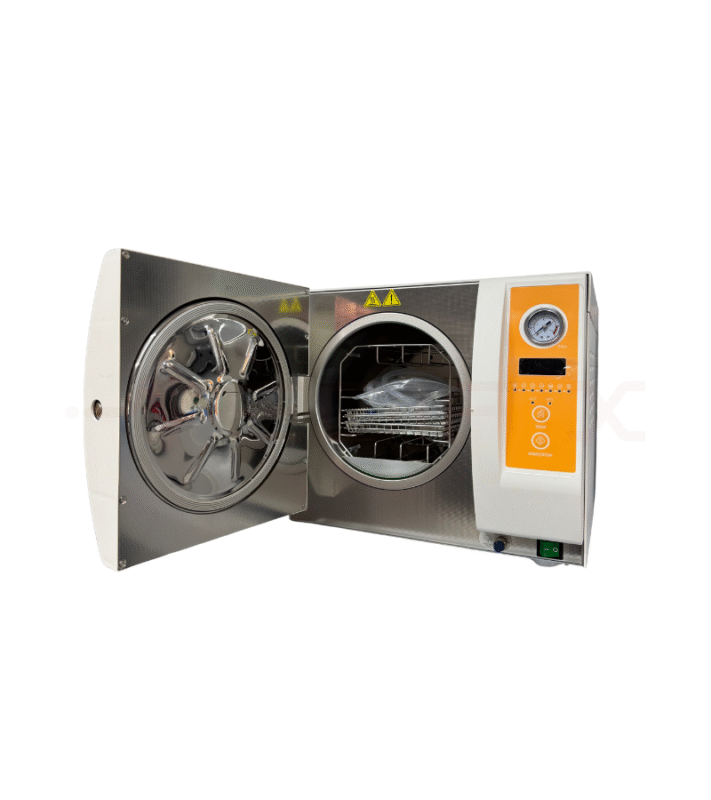Autoclave de 23 litros clase B. Con sistema de calefacción dual, control de temperatura múltiple. Teclas táctiles de Omron.