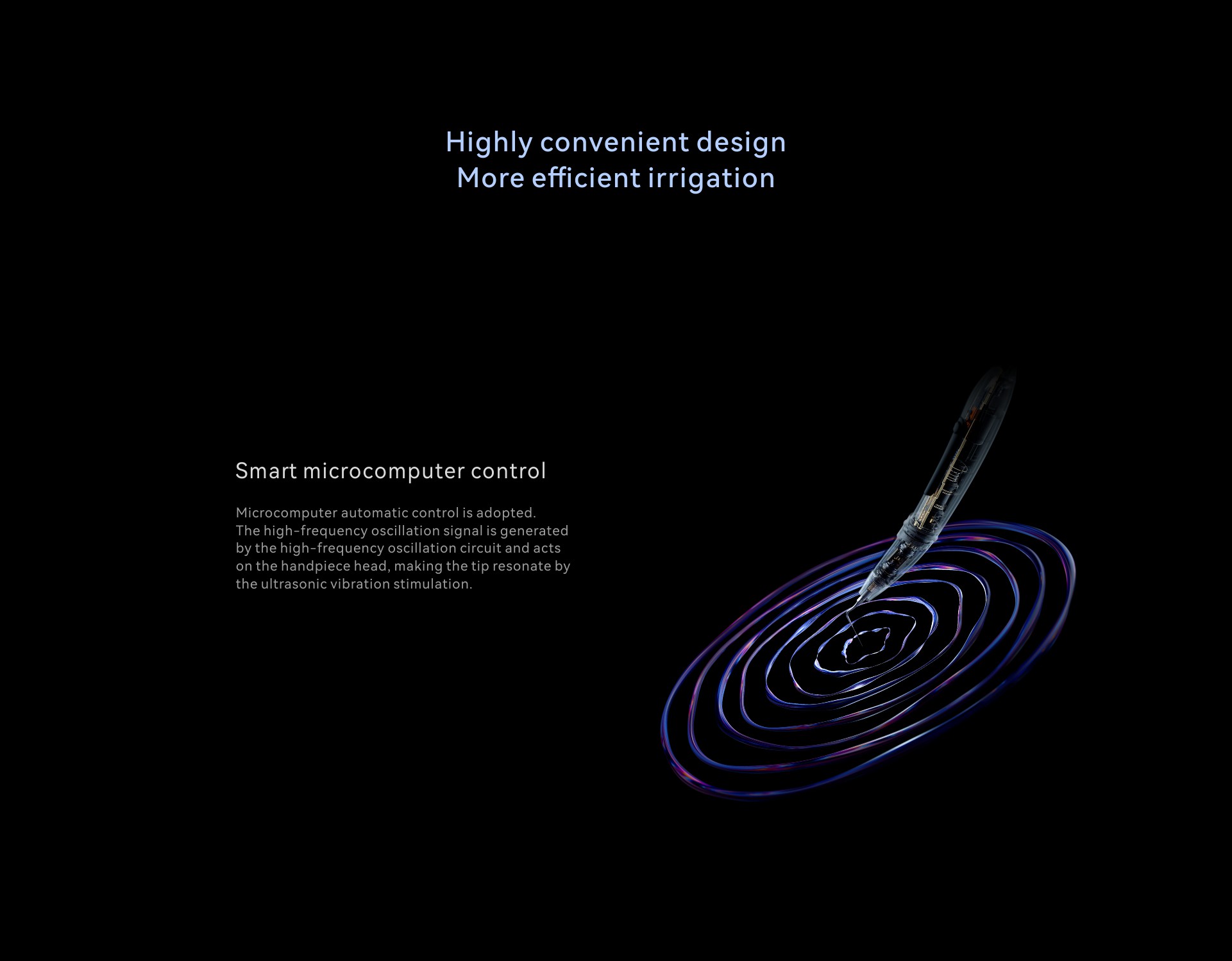 Se utiliza para la irrigación del conducto radicular. Ioniza la limpieza y desinfección de los conductos. Aumenta la eficacia en la eliminación de residuos que las técnicas manuales.