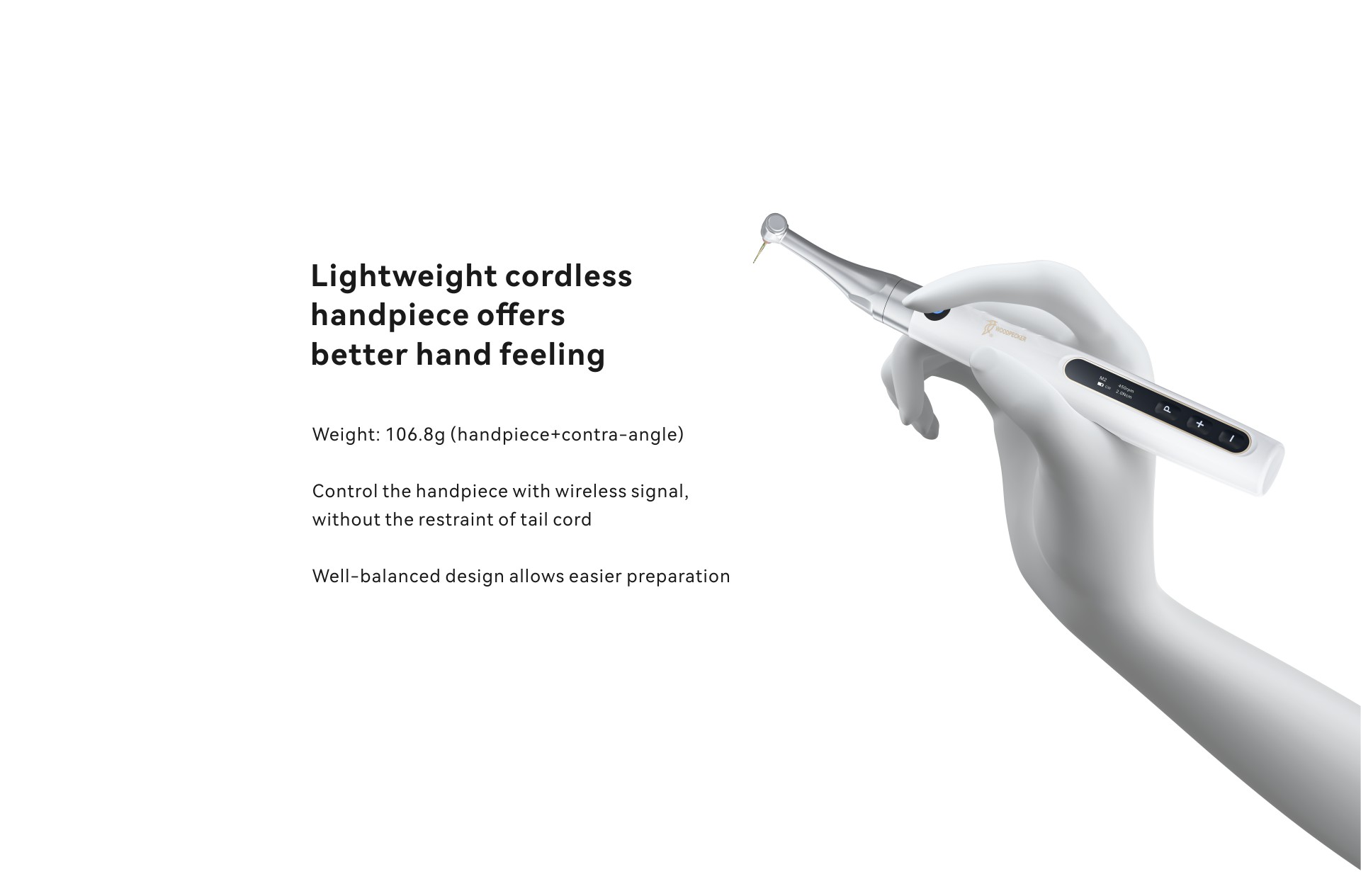 Endomotor inalámbrico para la preparación y ampliación de conductos radiculares. Motor sin escobillas, bajo nivel de ruido y larga vida útil.