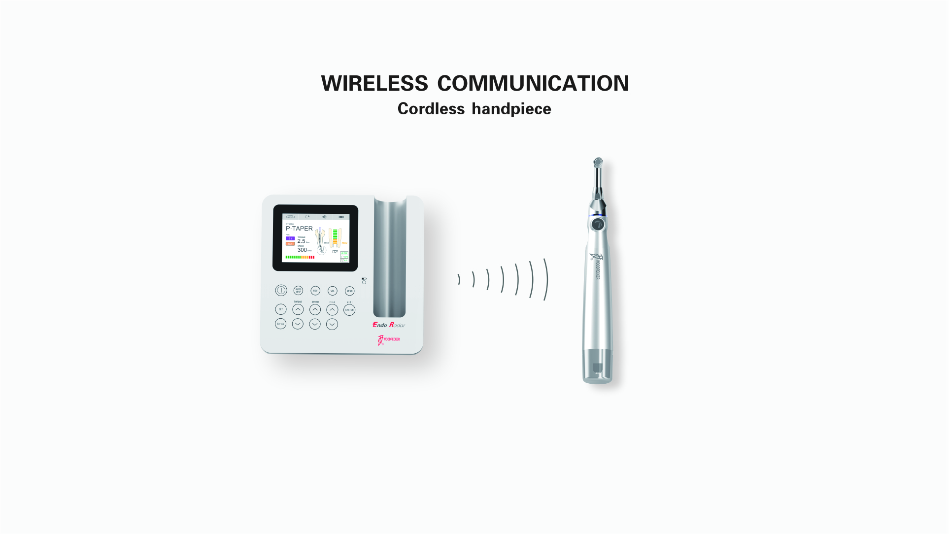 Endomotor inalámbrico para la preparación y ampliación de conductos radiculares. Motor sin escobillas, bajo nivel de ruido y larga vida útil.
