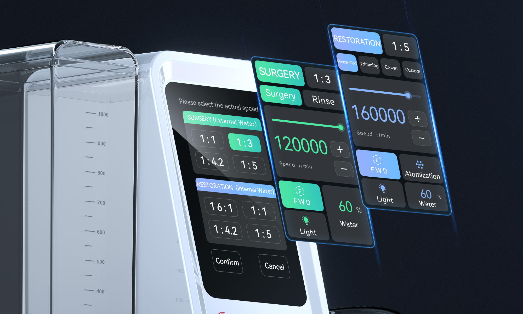 - Velocidad precisa y ajustable, menor generación de calor, corte más estable y preciso ·Menor riesgo de rotura de fresa y lesiones iatrogénicas.