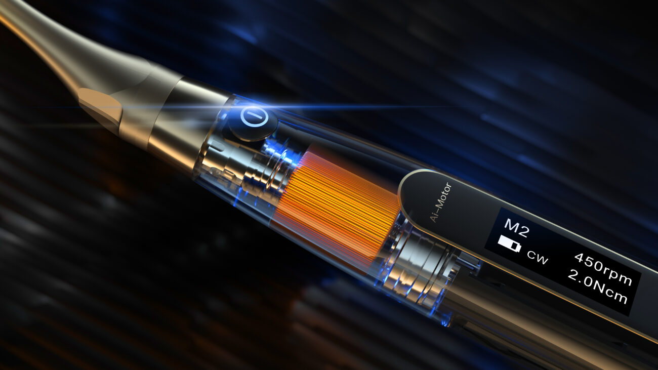 Endomotor inalámbrico para la preparación y ampliación de conductos radiculares. Motor sin escobillas, bajo nivel de ruido y larga vida útil.