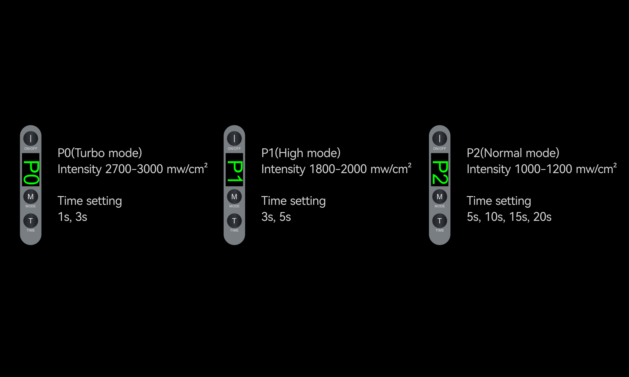 • 3 Modos de uso: P0 Turbo Power / P1  High Power / P2 Standard Power