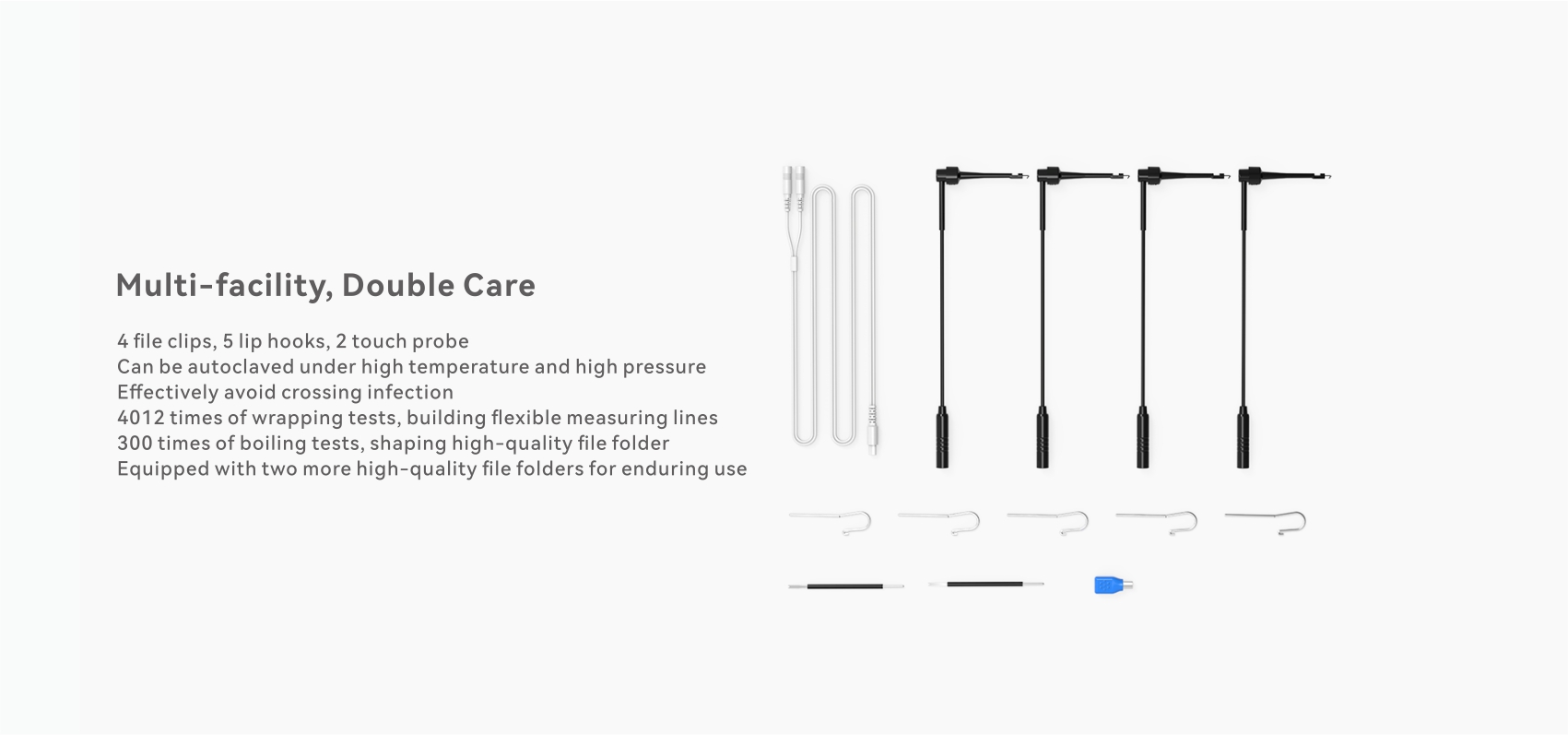 Equipo de medición de la longitud de los dientes apicales. Imagen clara y diferentes colores que indican la trayectoria de la lima. Pequeño, ligero y cómodo.