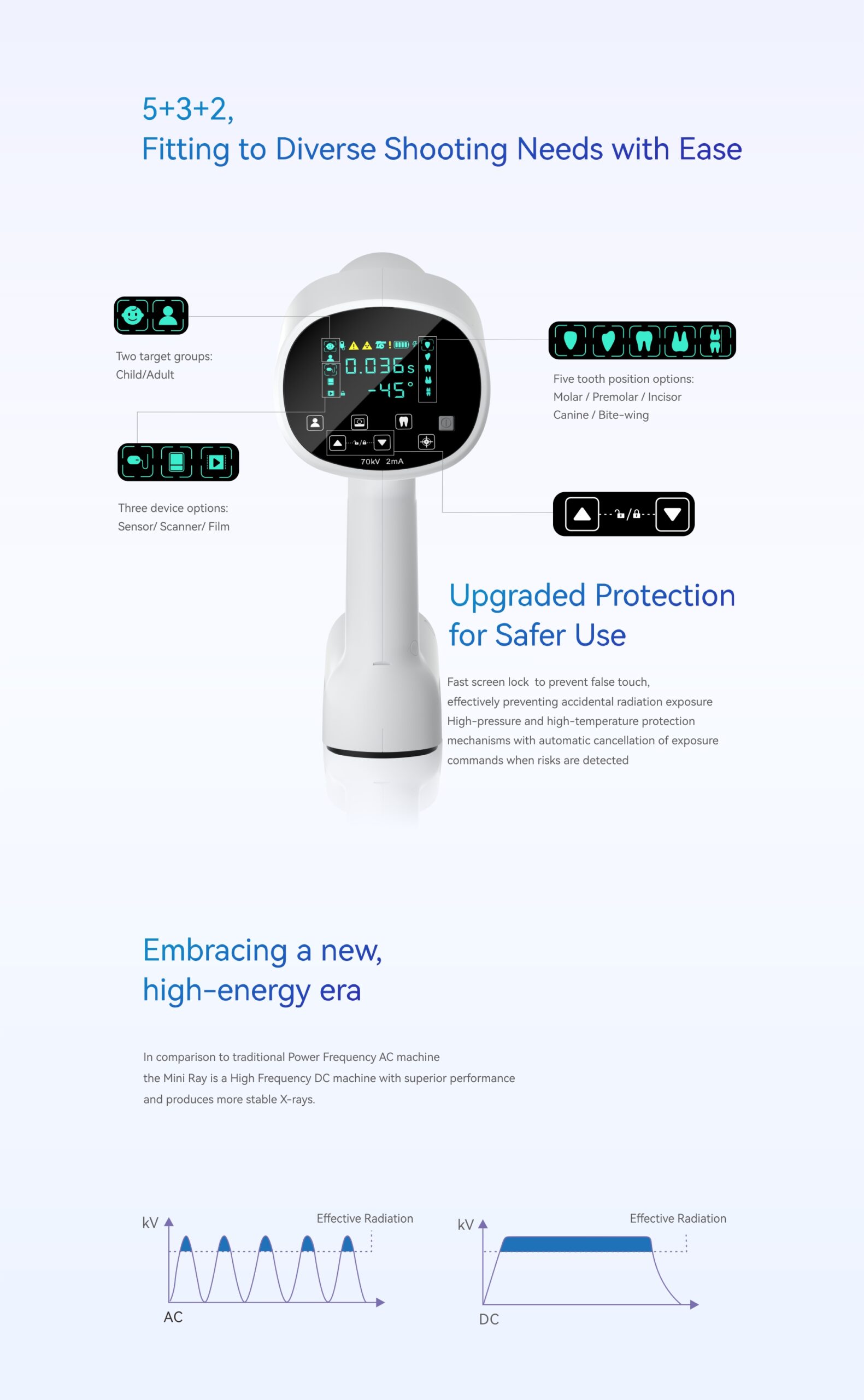 Rayos X portátil tipo pistola pequeño, ligero y fácil de usar.
