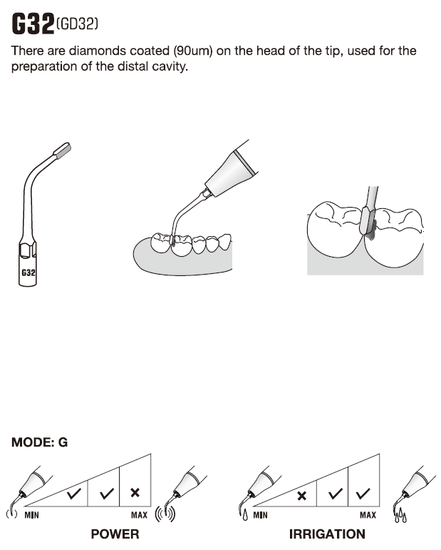 - Con recubrimiento de diamante (40 um) para eliminar la calcificación y el material de relleno defectuoso en el conducto radicular durante el retratamiento del conducto radicular.