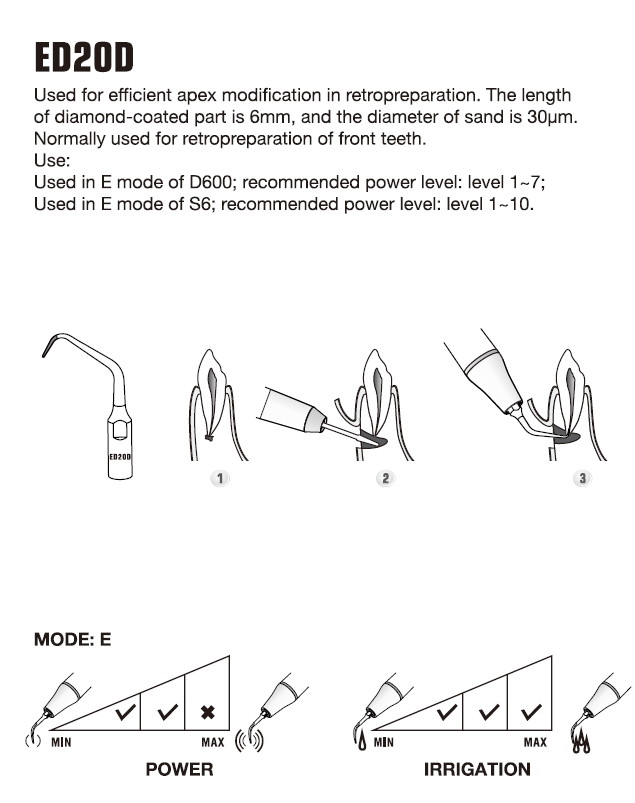 • Se utiliza para la modificación eficiente del ápice en la retropreparación.