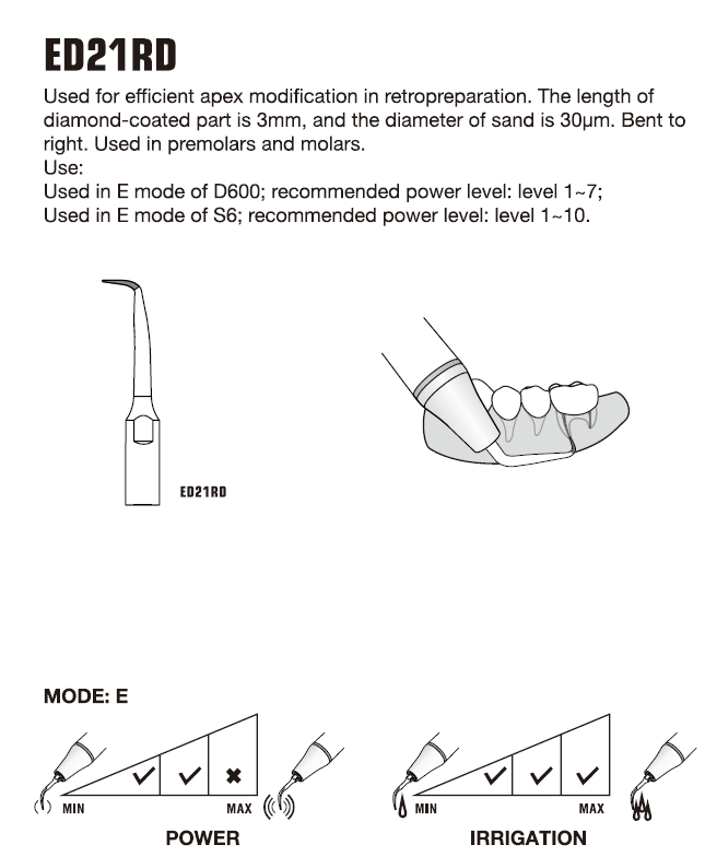 - Se utiliza para la modificación eficiente del ápice en la retropreparación.
