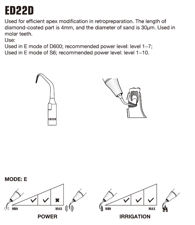 - Se utiliza para la modificación eficiente del ápice en la retropreparación.