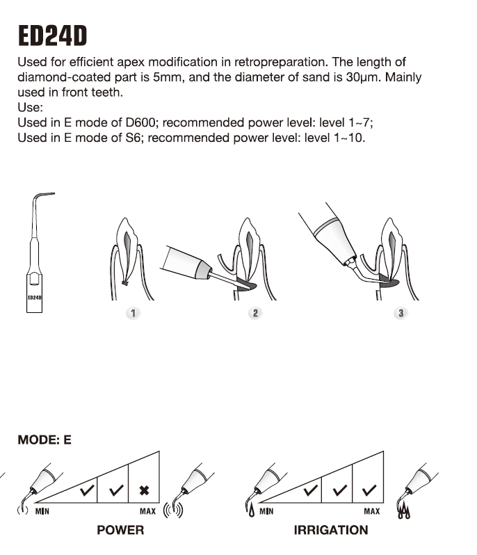 - Se utiliza para la modificación eficiente del ápice en la retropreparación.