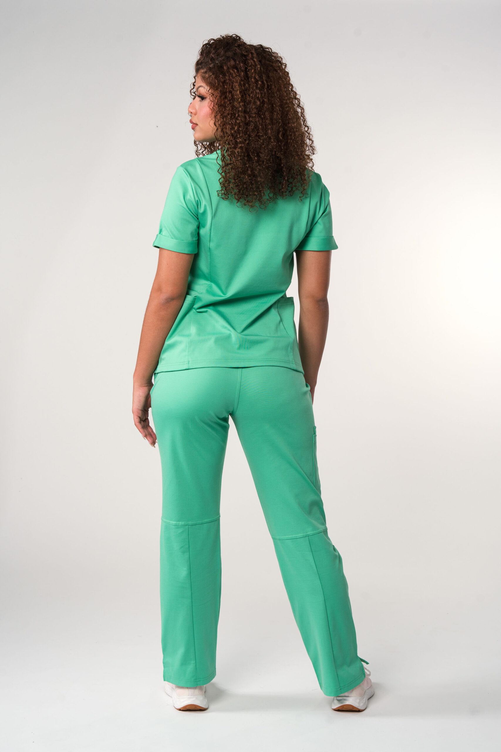 • Espalda con corte a la mitad del hombro a lo largo de la blusa.